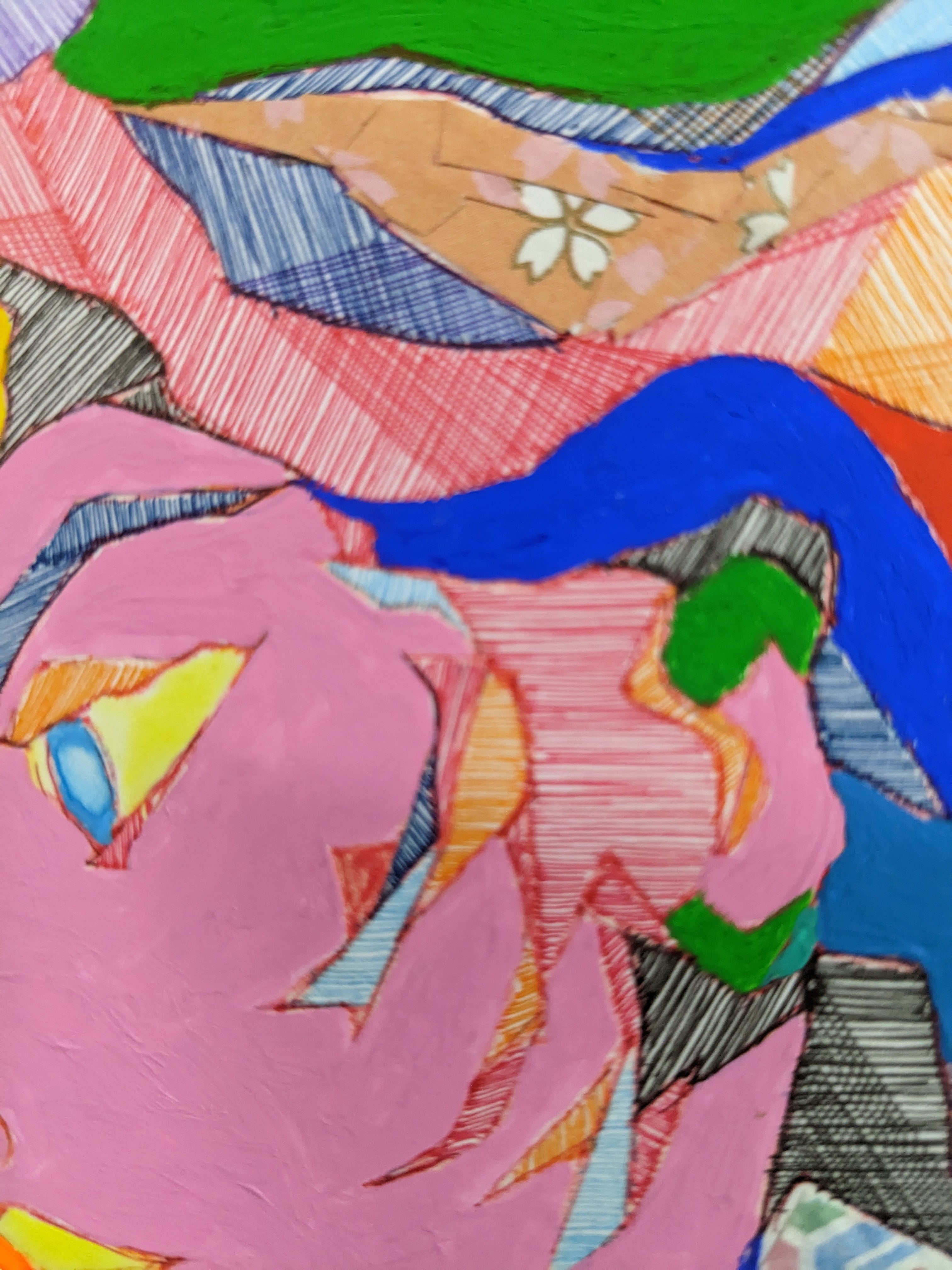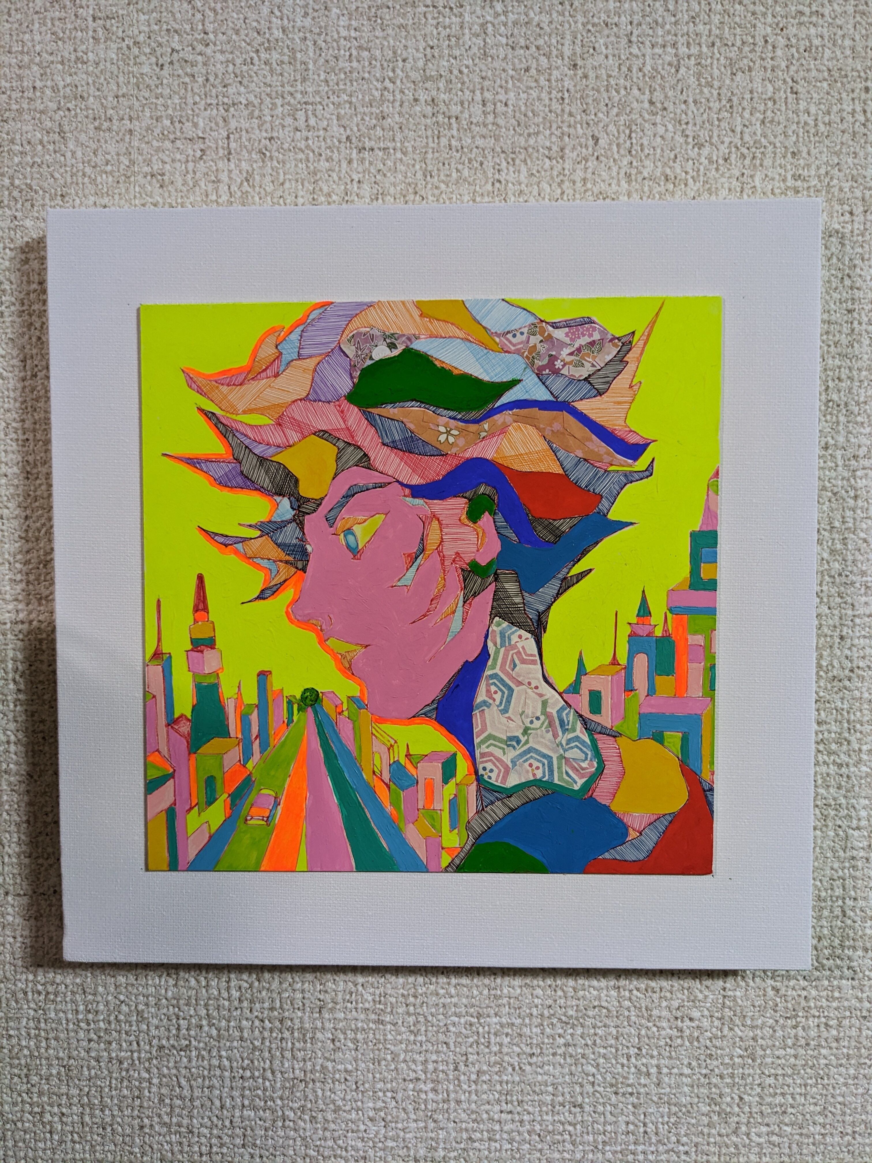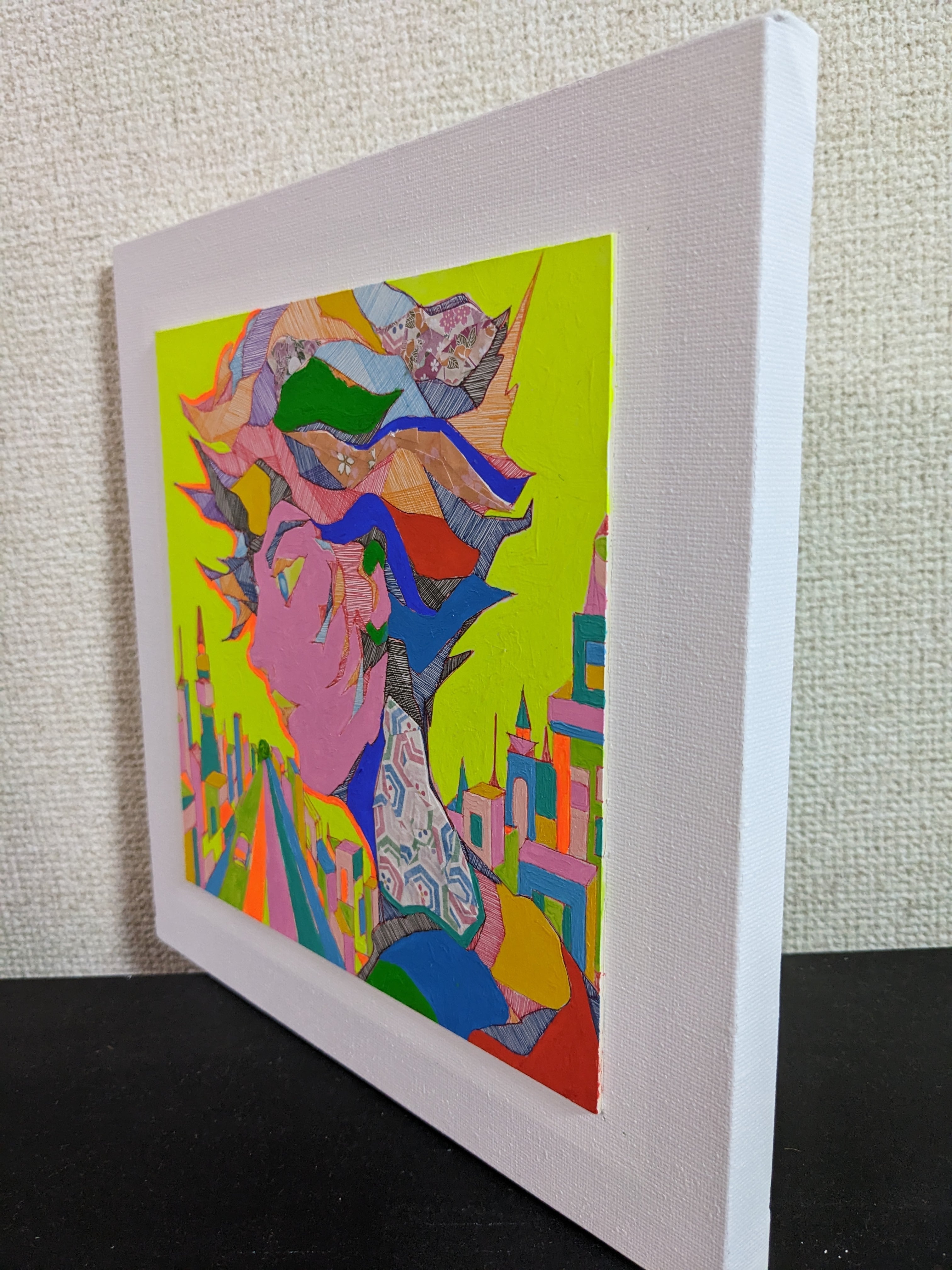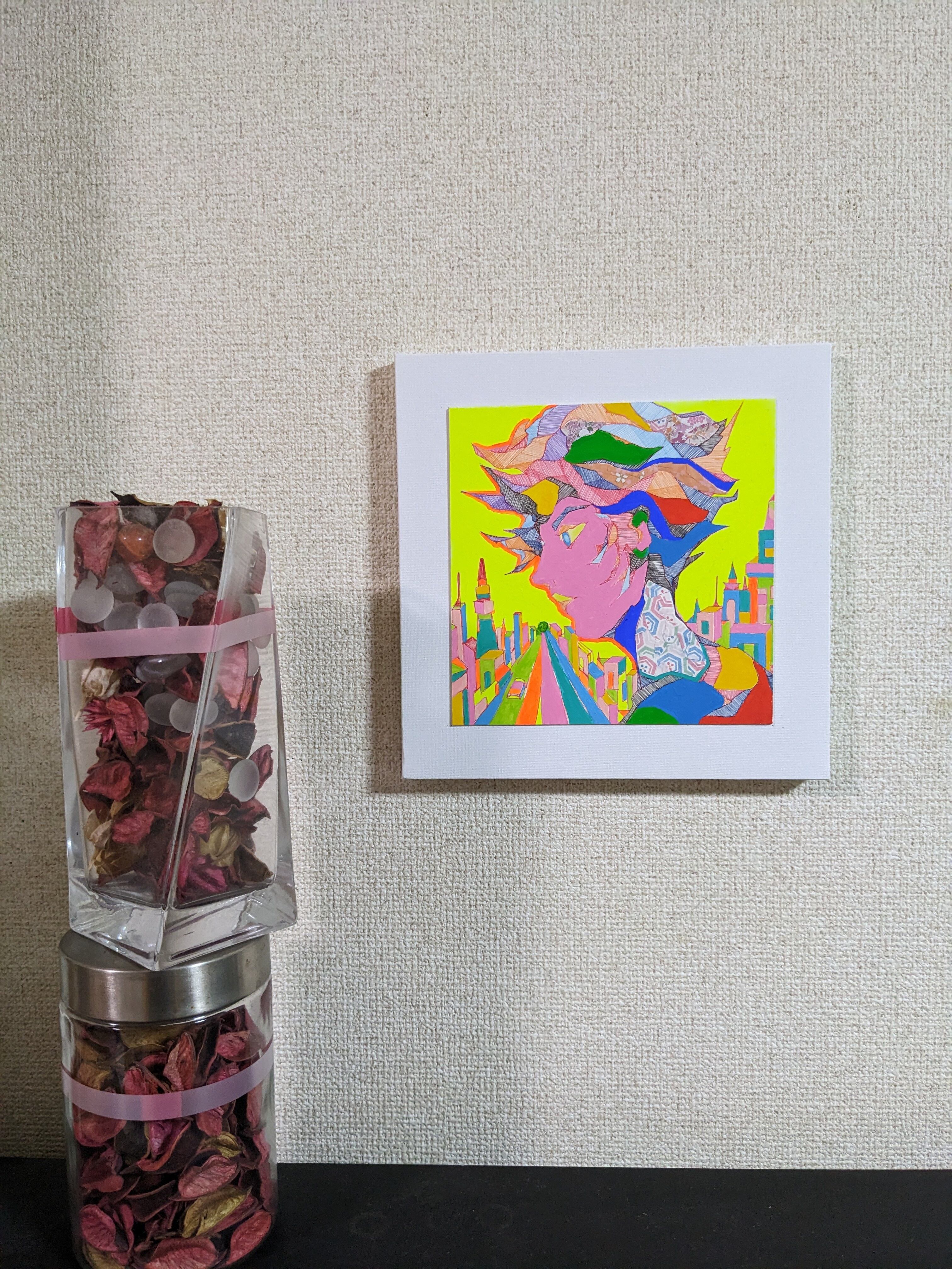 キャンバスボードに描き、それをキャンバスに貼り付けてあります。