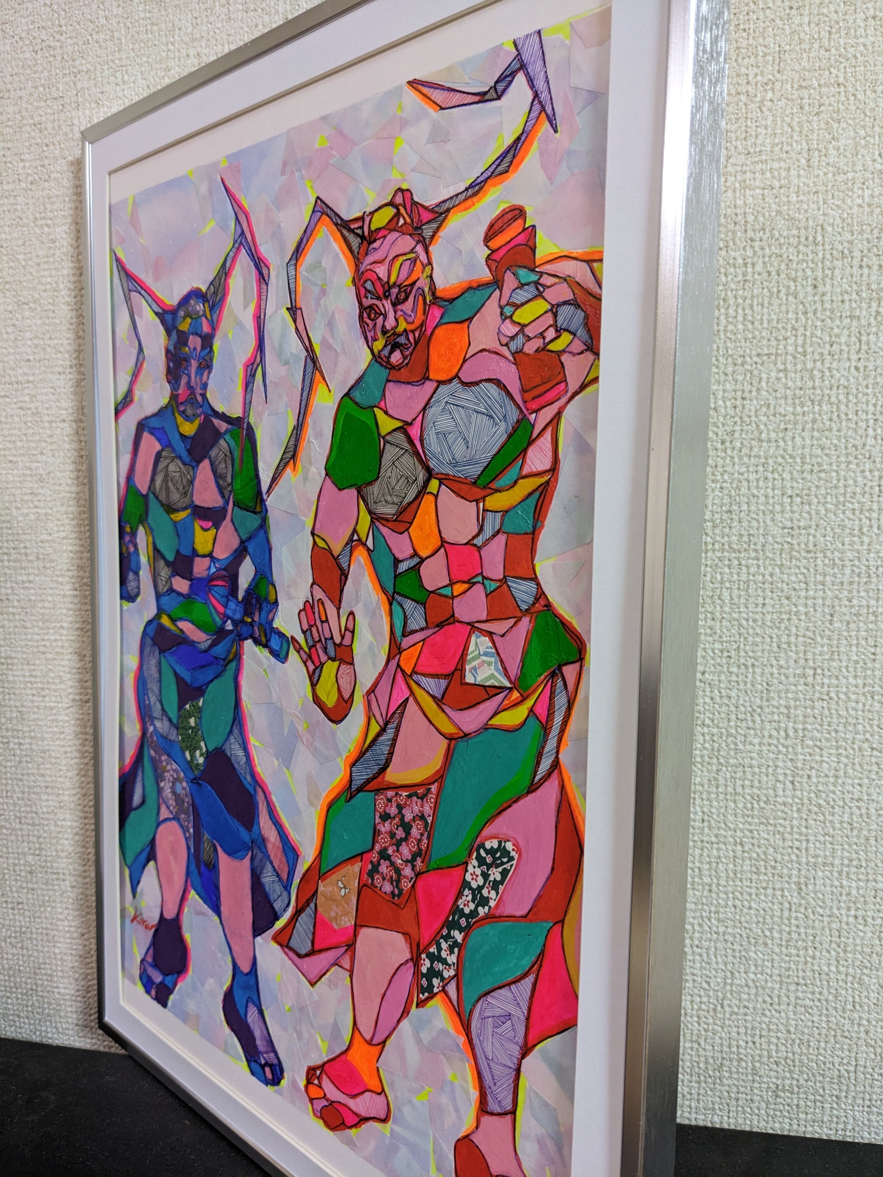 作品のサイズはA3で、オリジナル原画の一点物です。額も付いていますので、ぜひお部屋に飾り、作品の持つ魅力をお楽しみください!