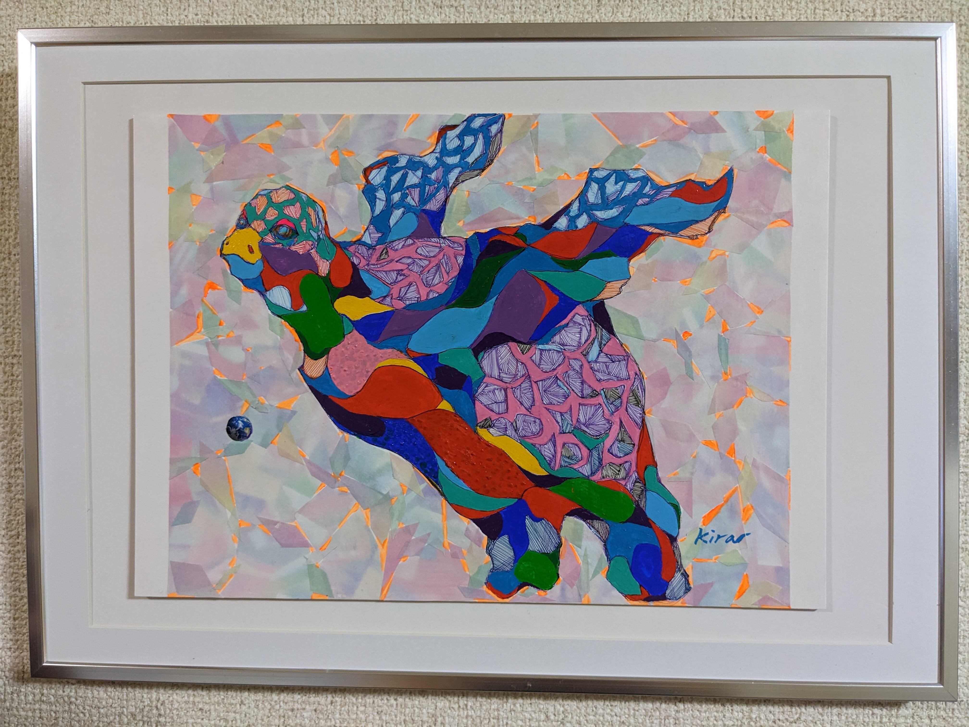 start4は、カラフルな亀が元気にジャンプする姿を描いたユニークな作品です。この作品は、見る人に楽しい気持ちと活気をもたらすと思います。色と形が織りなす鮮やかな表現が、心に響くことを願います。