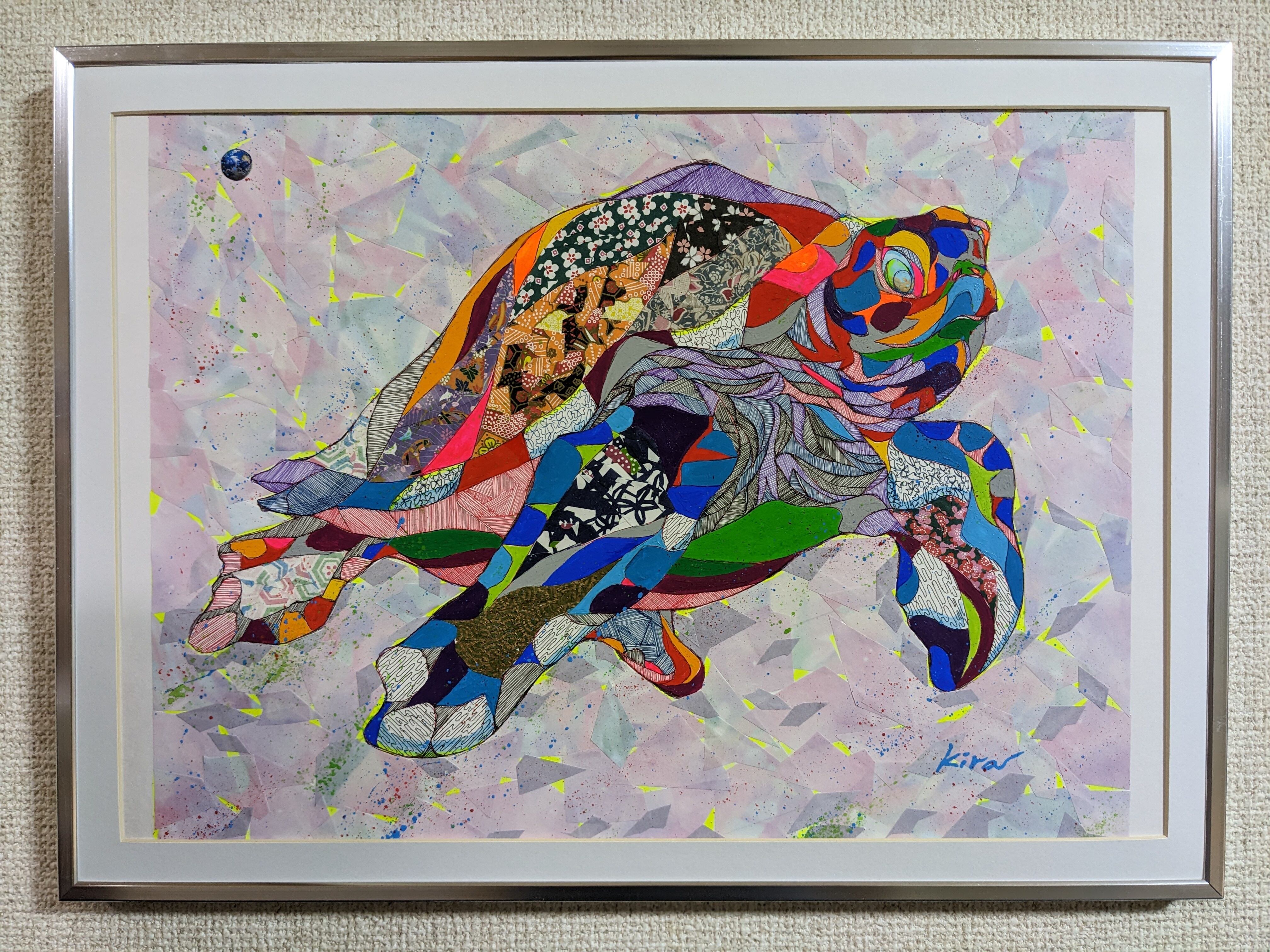 この作品は、亀をモチーフに「時間」「記憶」「旅」をテーマとして描いた抽象表現作品です。