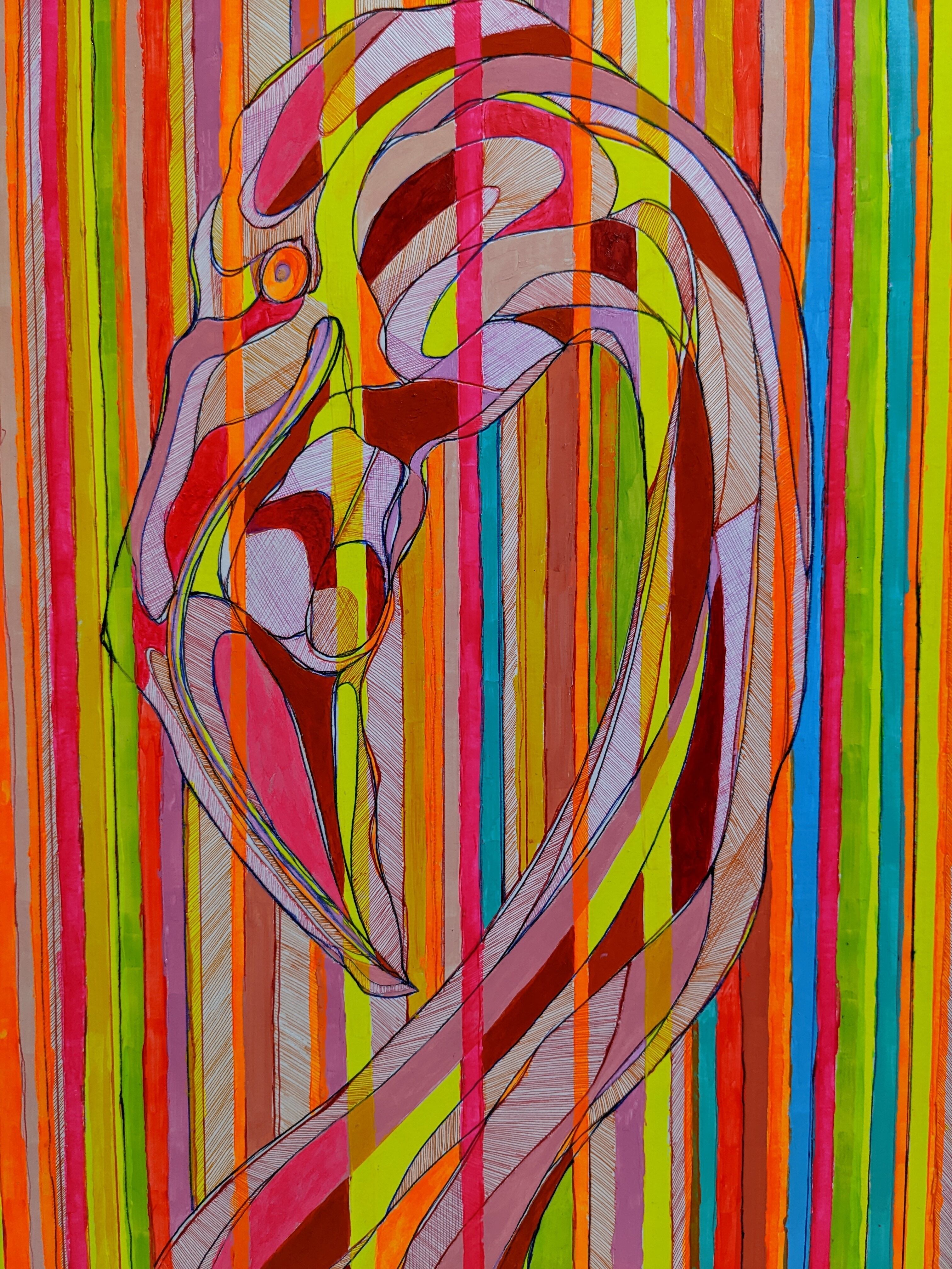 フラミンゴに癒やされる、カラフルでポップなアクリル画の「jiro(ジロ)」。手描きで描かれたフラミンゴが、まるでリアルな光景のように見えます。鮮やかで華やかな色使いは、リビングやベッドルームなどのインテリアにアクセントを与え、お部屋の雰囲気をより明るくしてくれます。