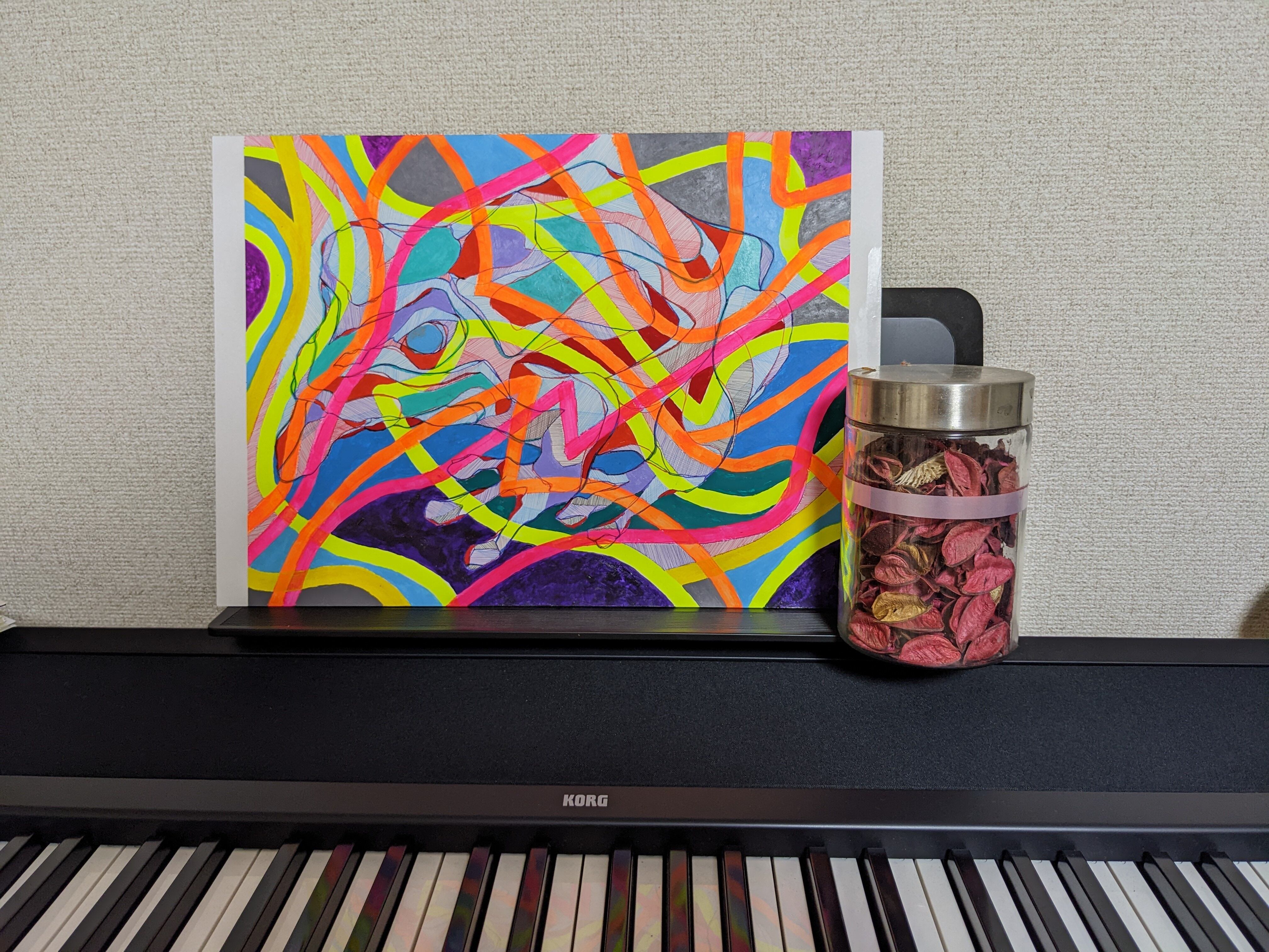 カエルの絵を飾ってみませんか?カラフルな色合いのアクリル画なので、お部屋が明るく華やかになりますよ。細かな部分まで丁寧に描かれたカエルの表情に、何度見ても癒されます。