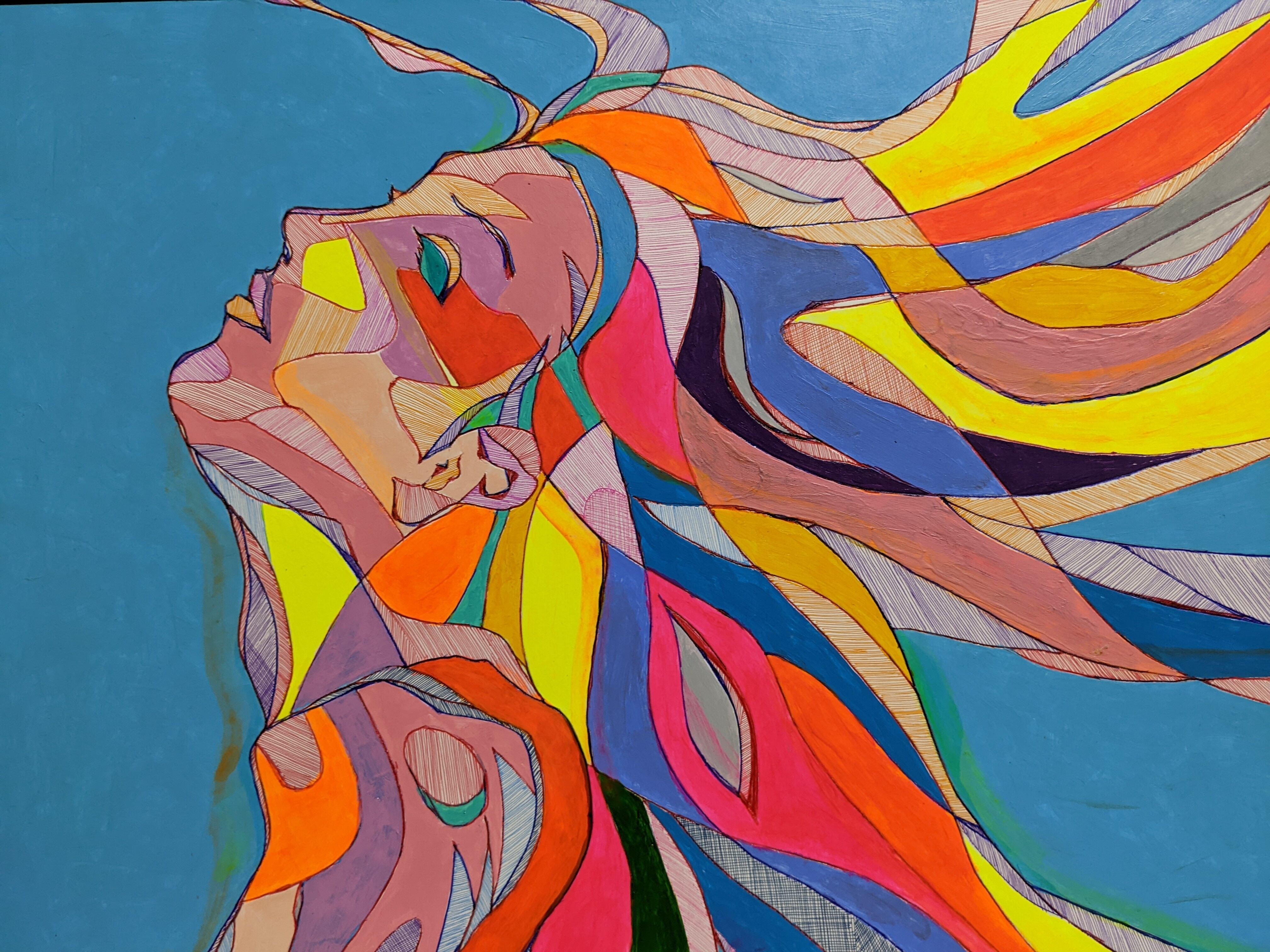 自由自在に舞う風になびく女性を描いたアクリル画「flow」。独特な筆使いと色使いで表現されたこの絵は、どんなインテリアにもマッチし、お部屋を素敵に彩ってくれます。