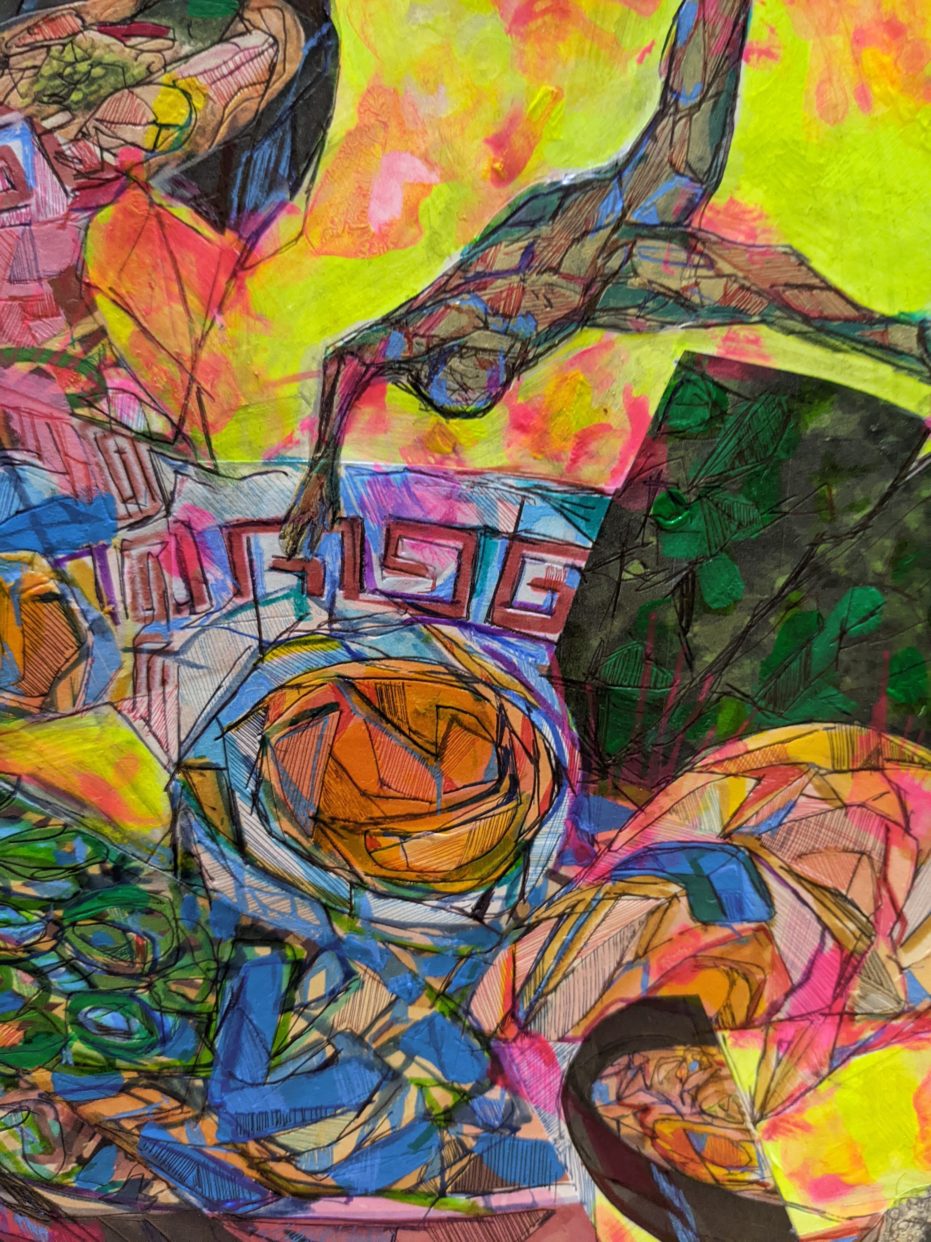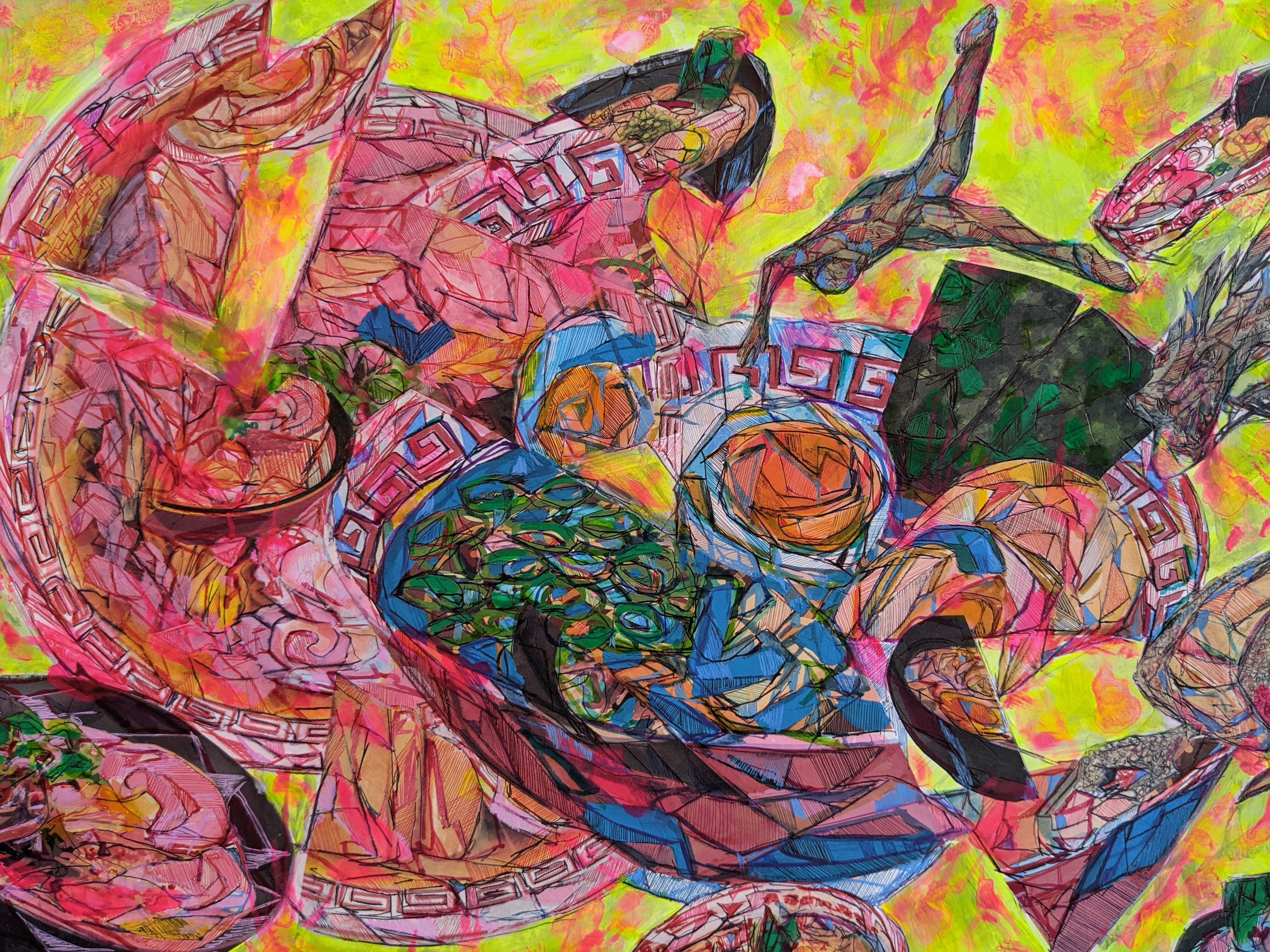作品に込められたストーリーは、ラーメンを食べるときのような、胸が躍るようなエネルギーを表現したものです。日常の中にある食べ物や瞬間を、アートとして表現することで、さらに美しく、特別なものになるのです。