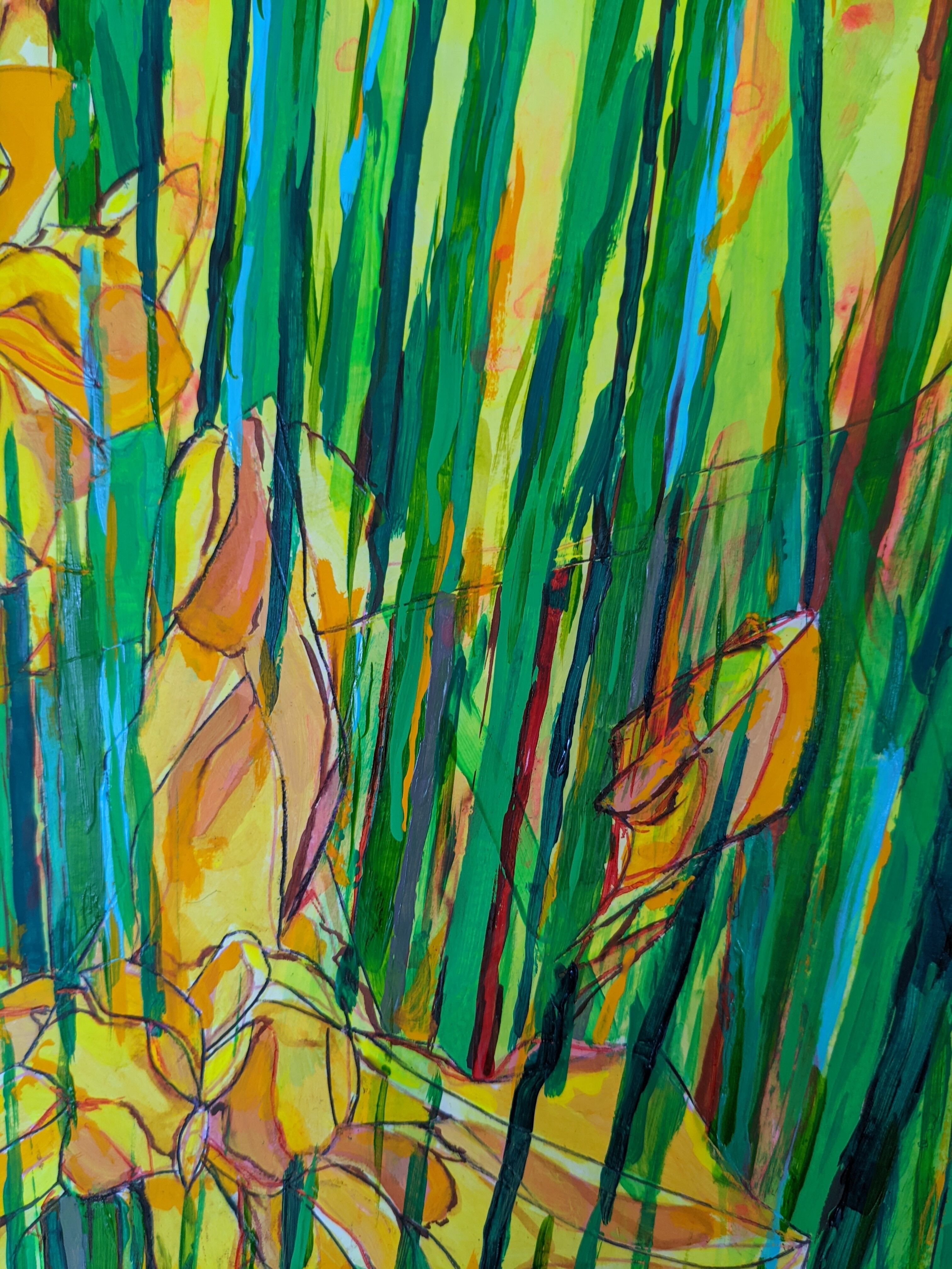 open(オープン)は、水仙の花を中心に黄色や緑をベースとしたカラフルな色使いが特徴の繪です。まるで花の中でひらくように、あなたの手元で開けば、新しい世界が広がるはずです。