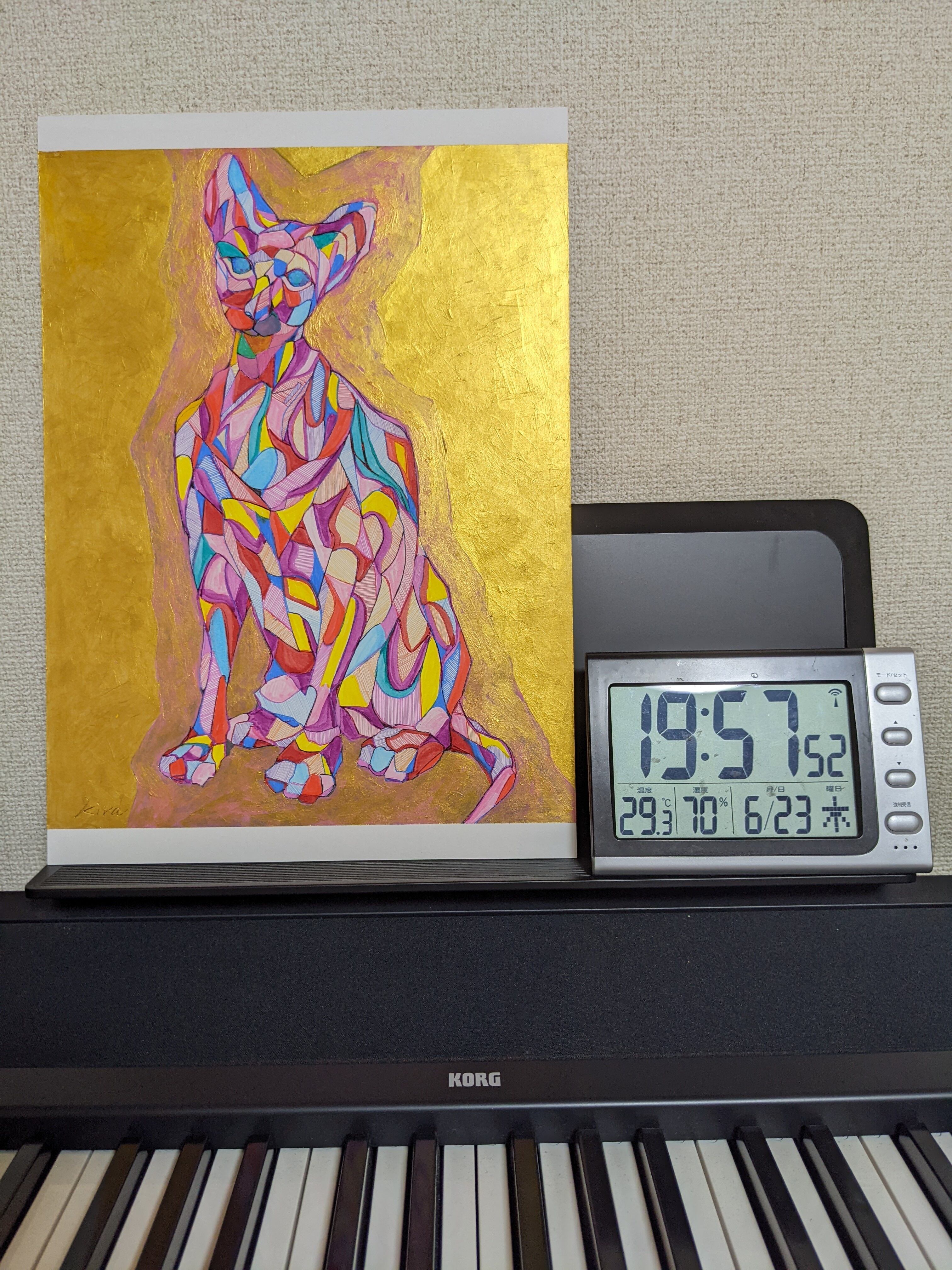 可愛らしさとポップなカラーが特徴的なcat G。アクリル画の猫です。色鮮やかな絵が、お部屋を明るい雰囲気に演出してくれます。