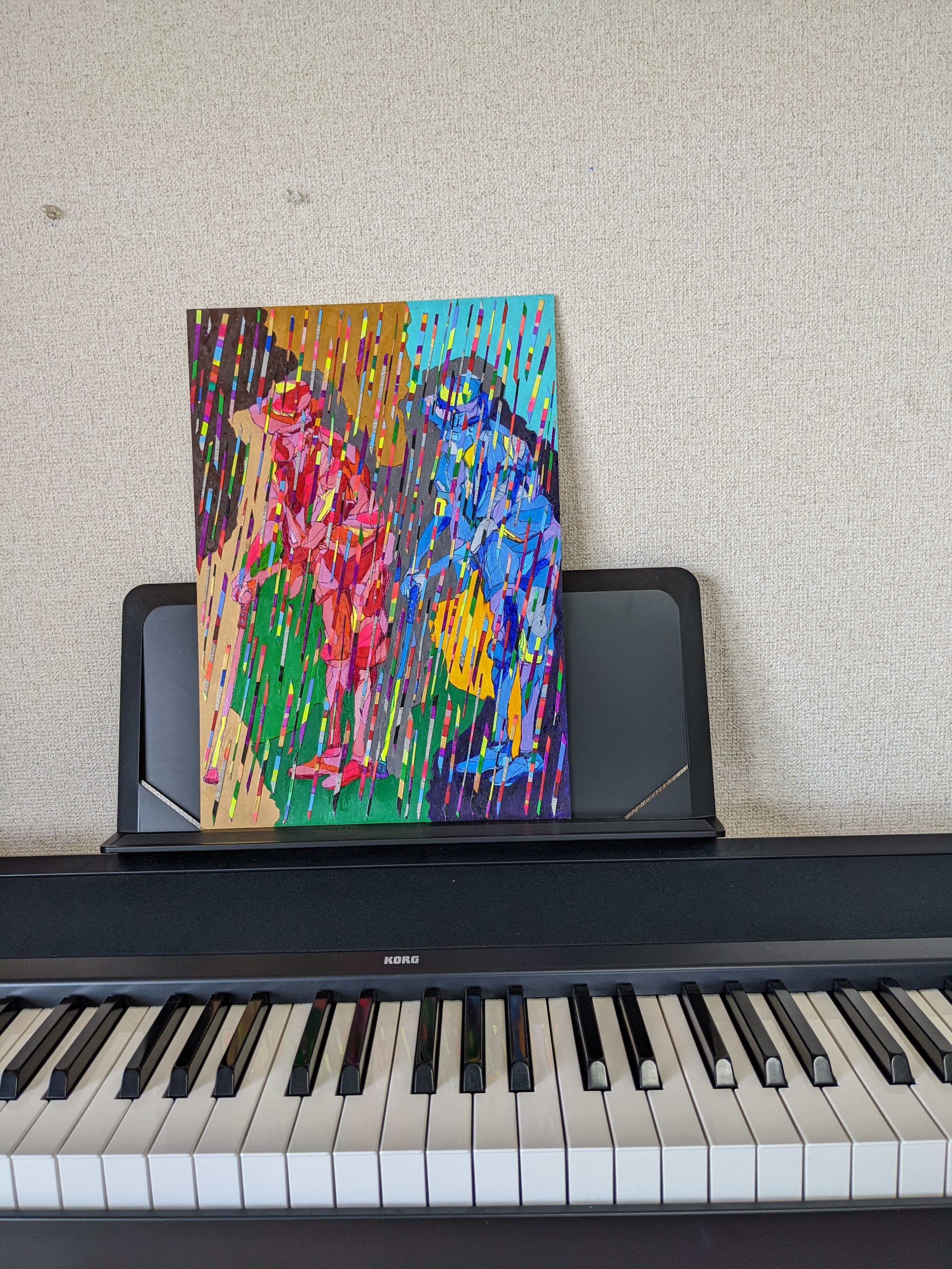 前を向いて進む人生の真実を、線や色を使ってわかりやすく表現されています。あなたが自分自身を見つめ直したいとき、この作品を眺めてみてください。