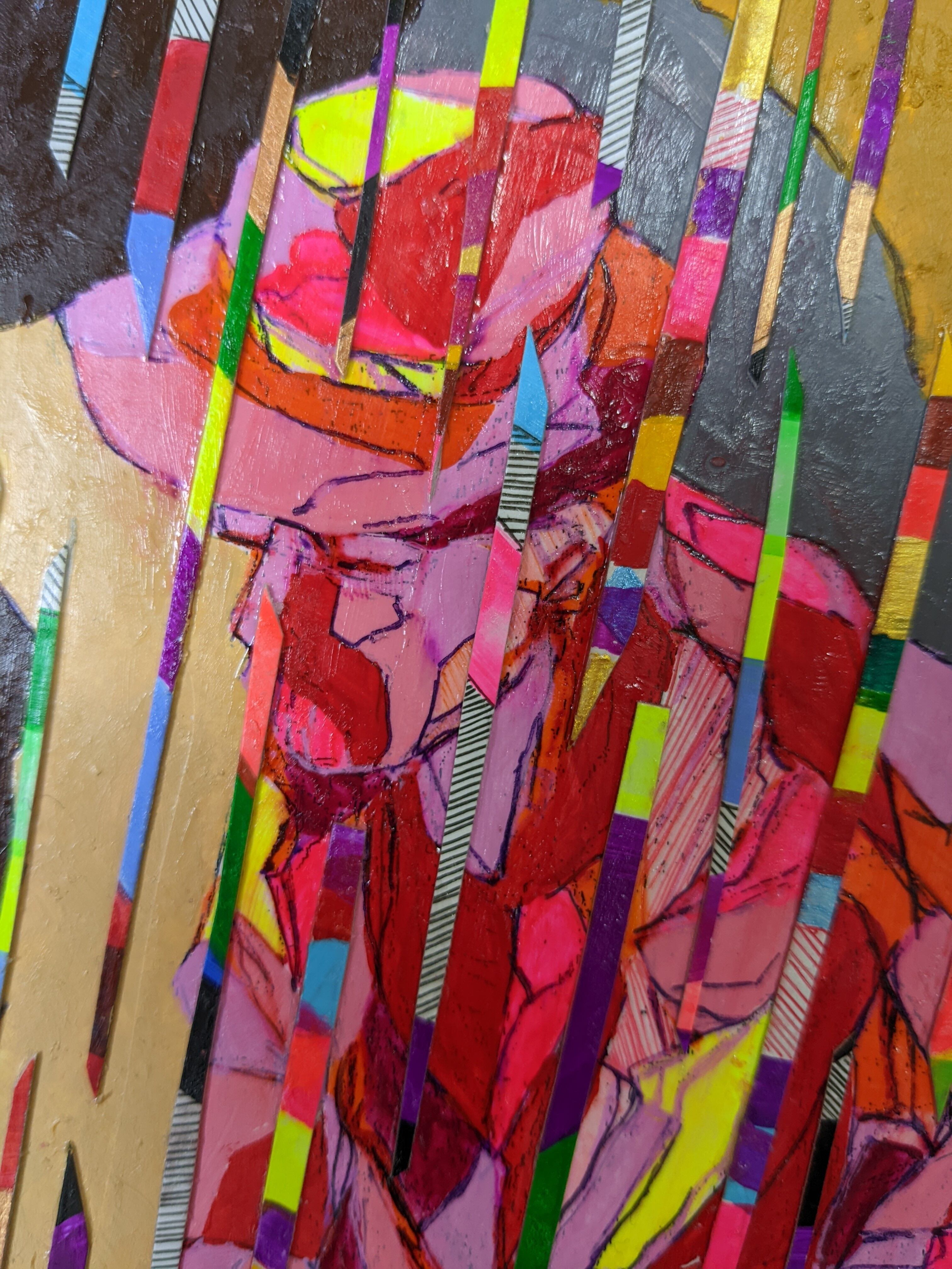 年齢をテーマにした絵画作品、『斜光』この作品は、年齢による人生の重みを表現した抽象画です。