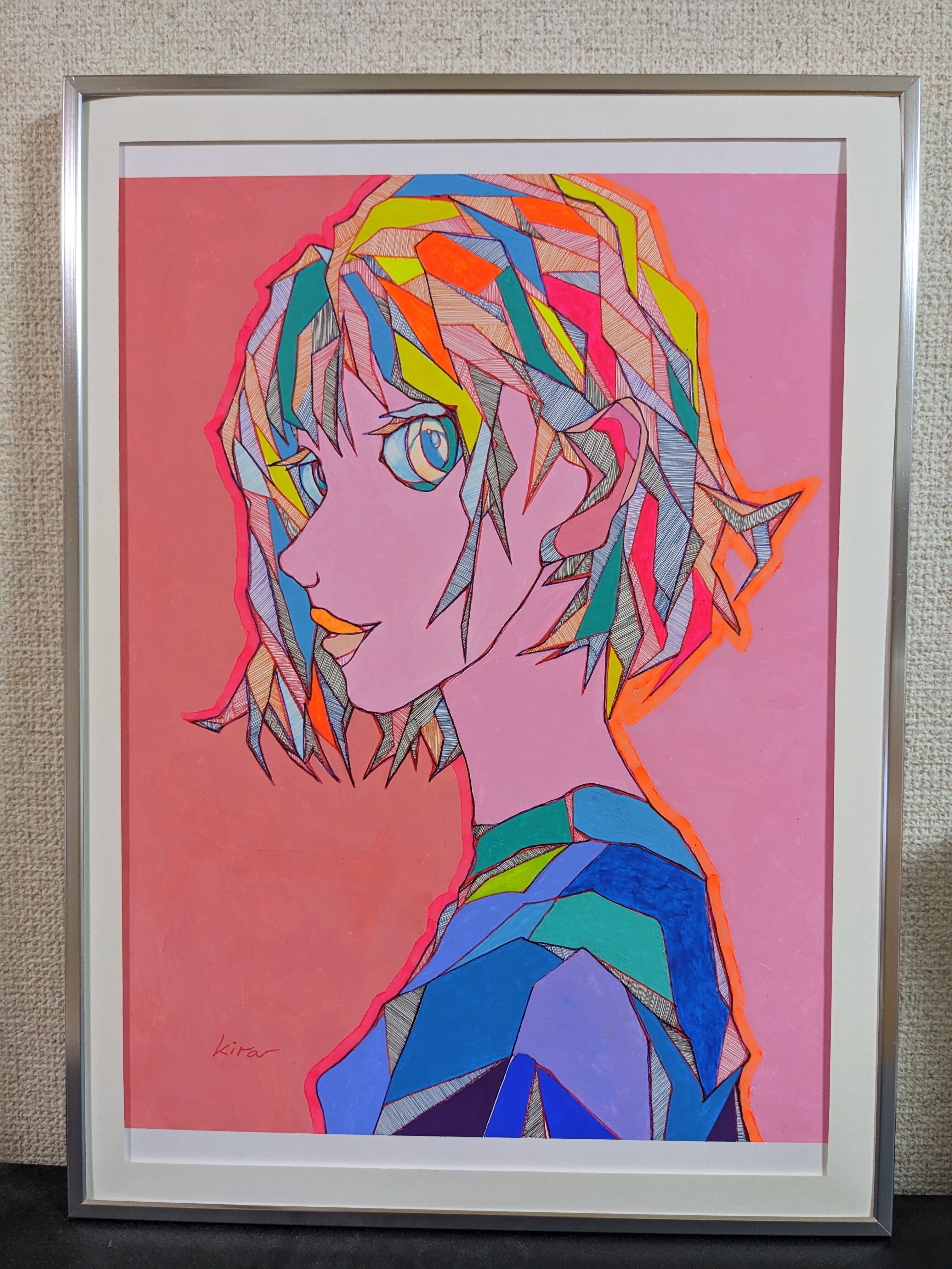 0.28mmボールペンで立体感と透明感を表し、アクリルで感情を表現しています