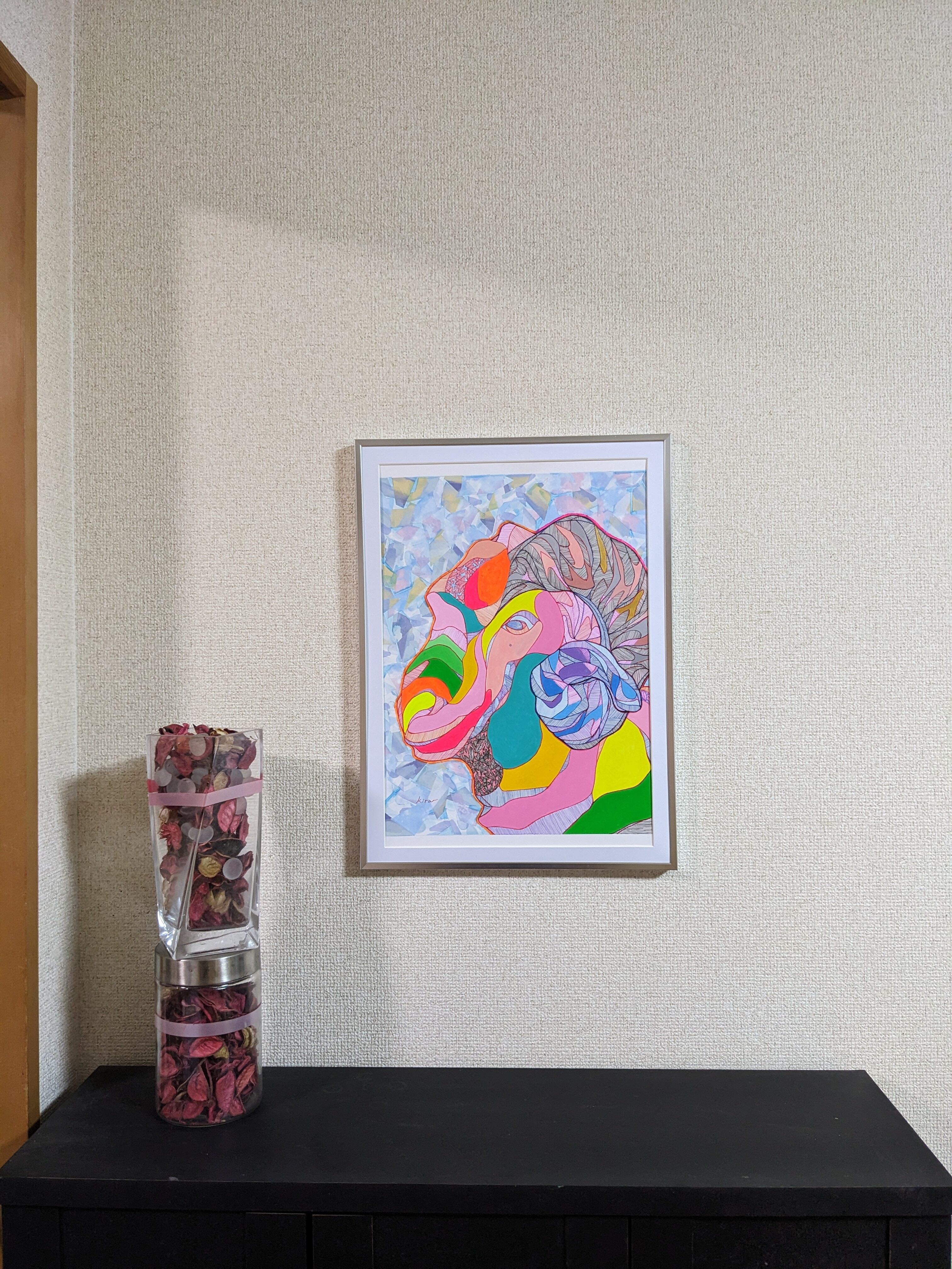 新品のアルミ製の額 もついていますので すぐに飾ることもできます 、透明性が高い アクリル板 マット付きです。