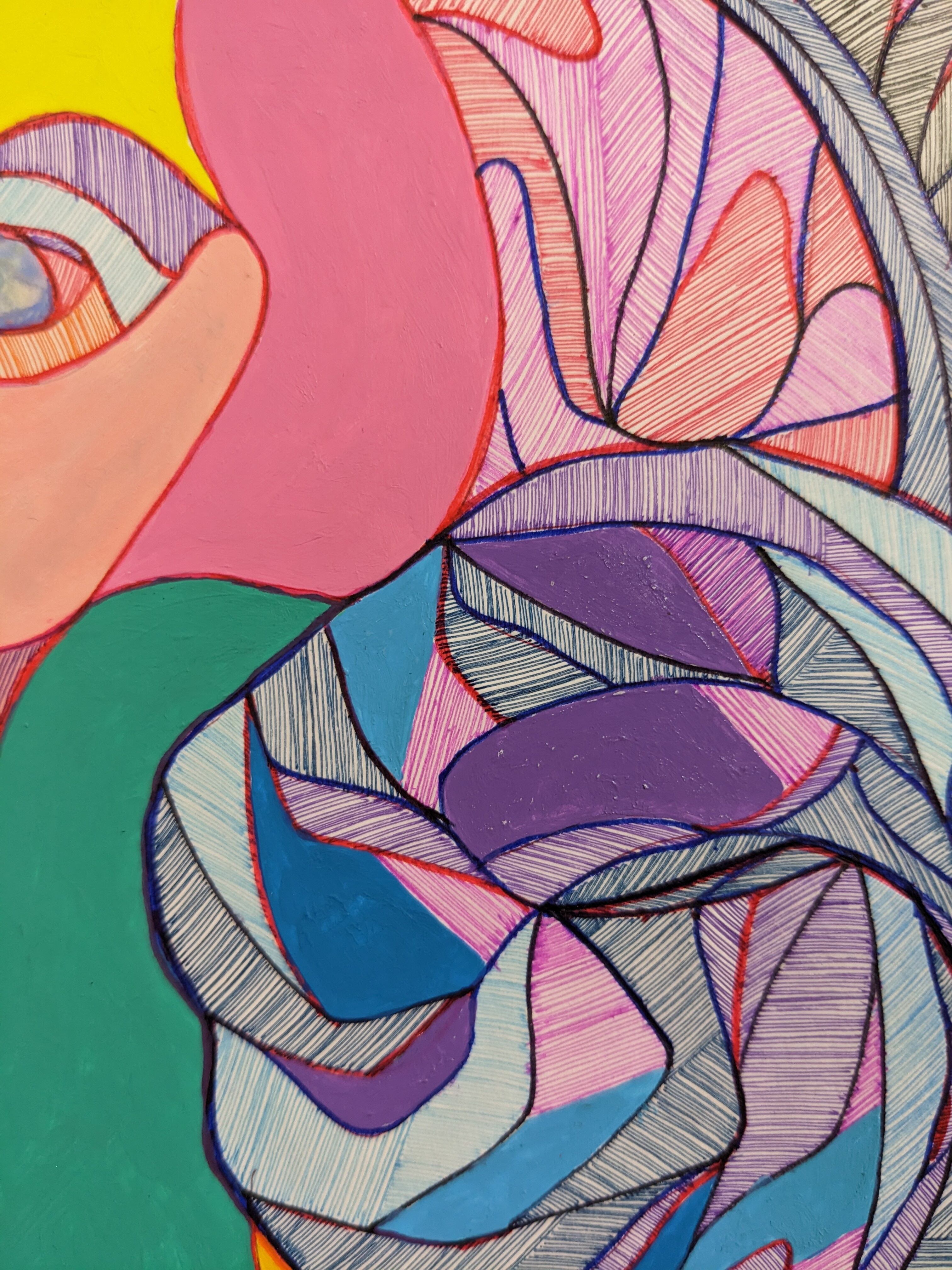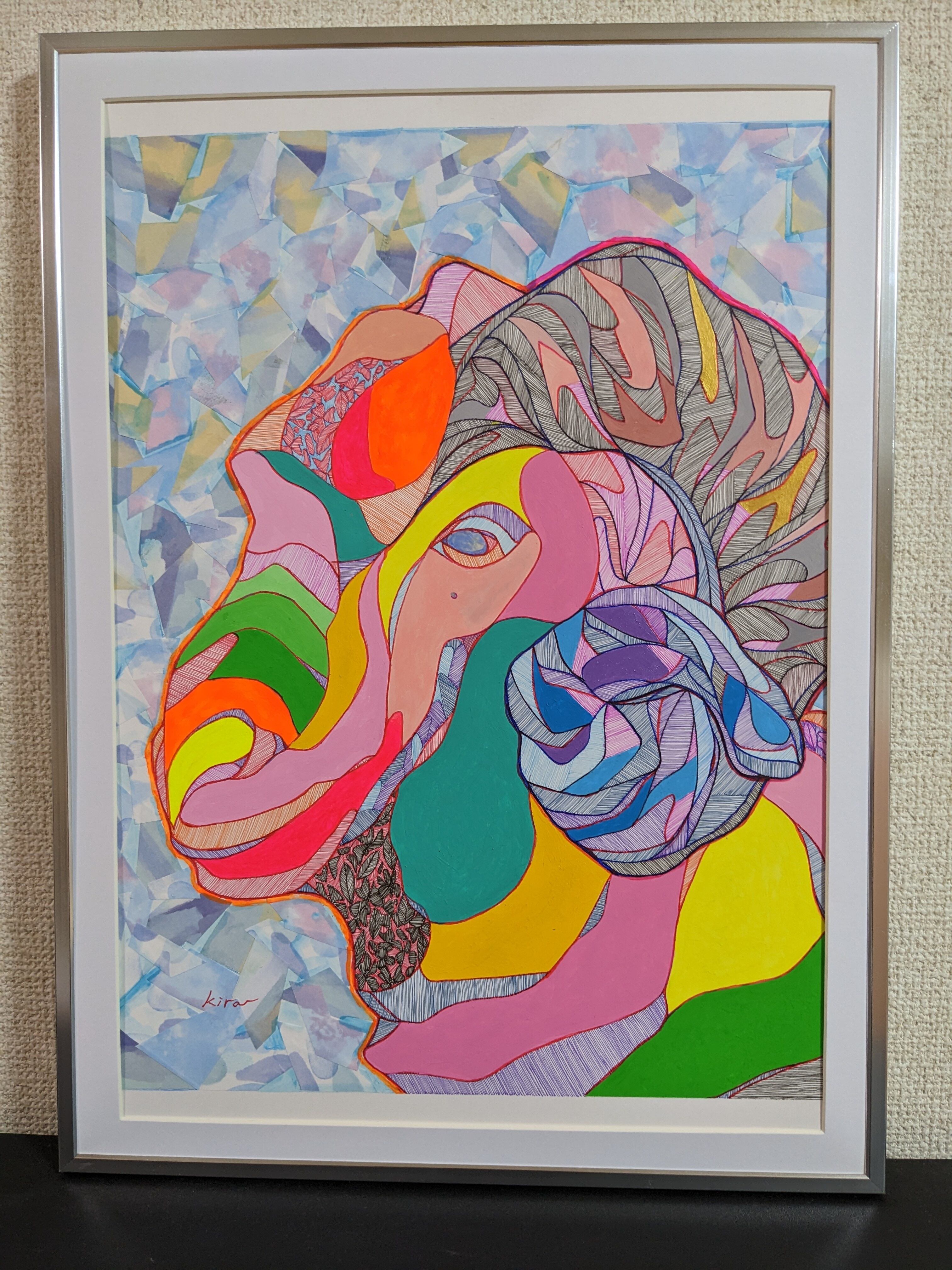 くるりとした角が特徴的な「くるり」。羊の穏やかな表情と、独特なデザインで表現しました、部屋のインテリアに華やかさをプラスする一枚です。