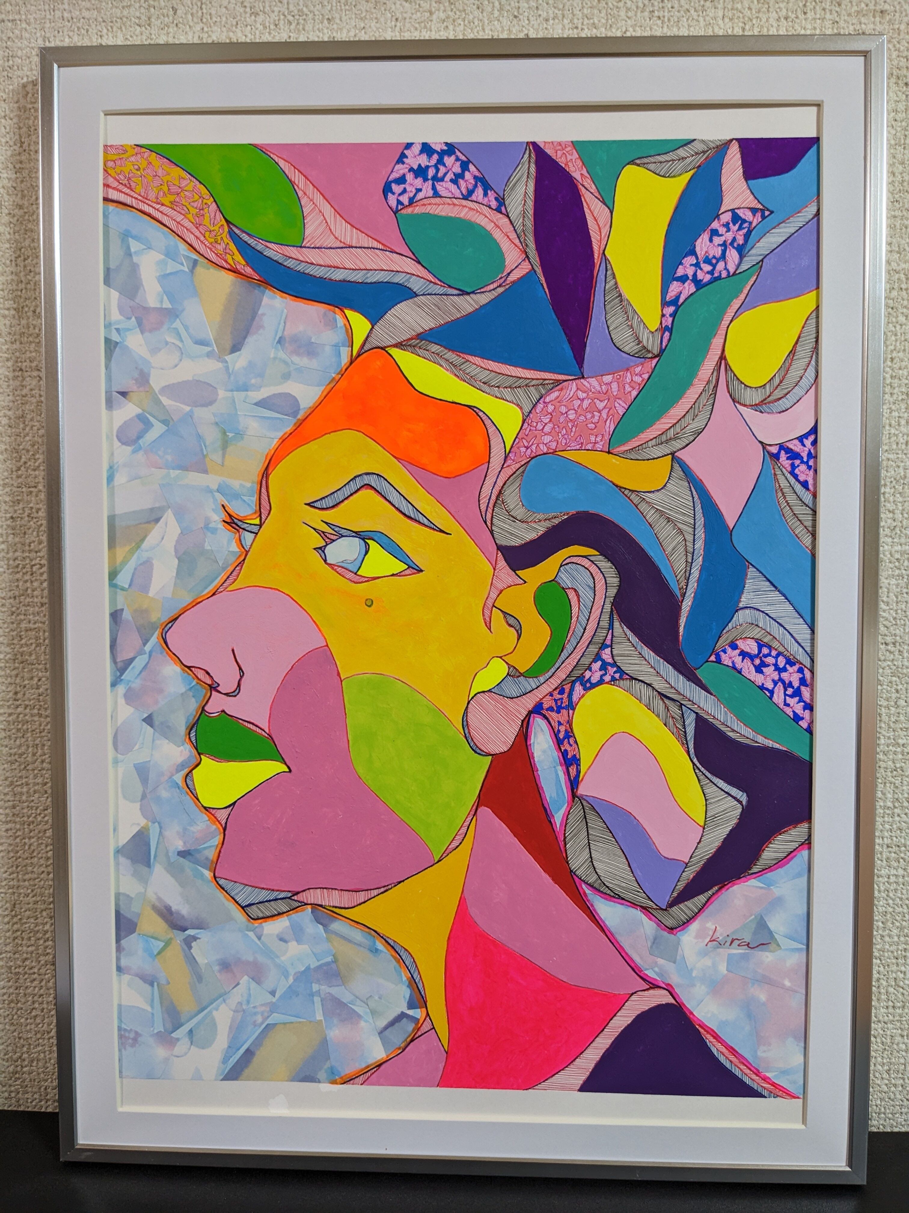 swaying-Kは、風に吹かれる女性の美しい表情を描いた作品です。一人の女性が風になびく様子は、前向きで力強い印象を与えます。