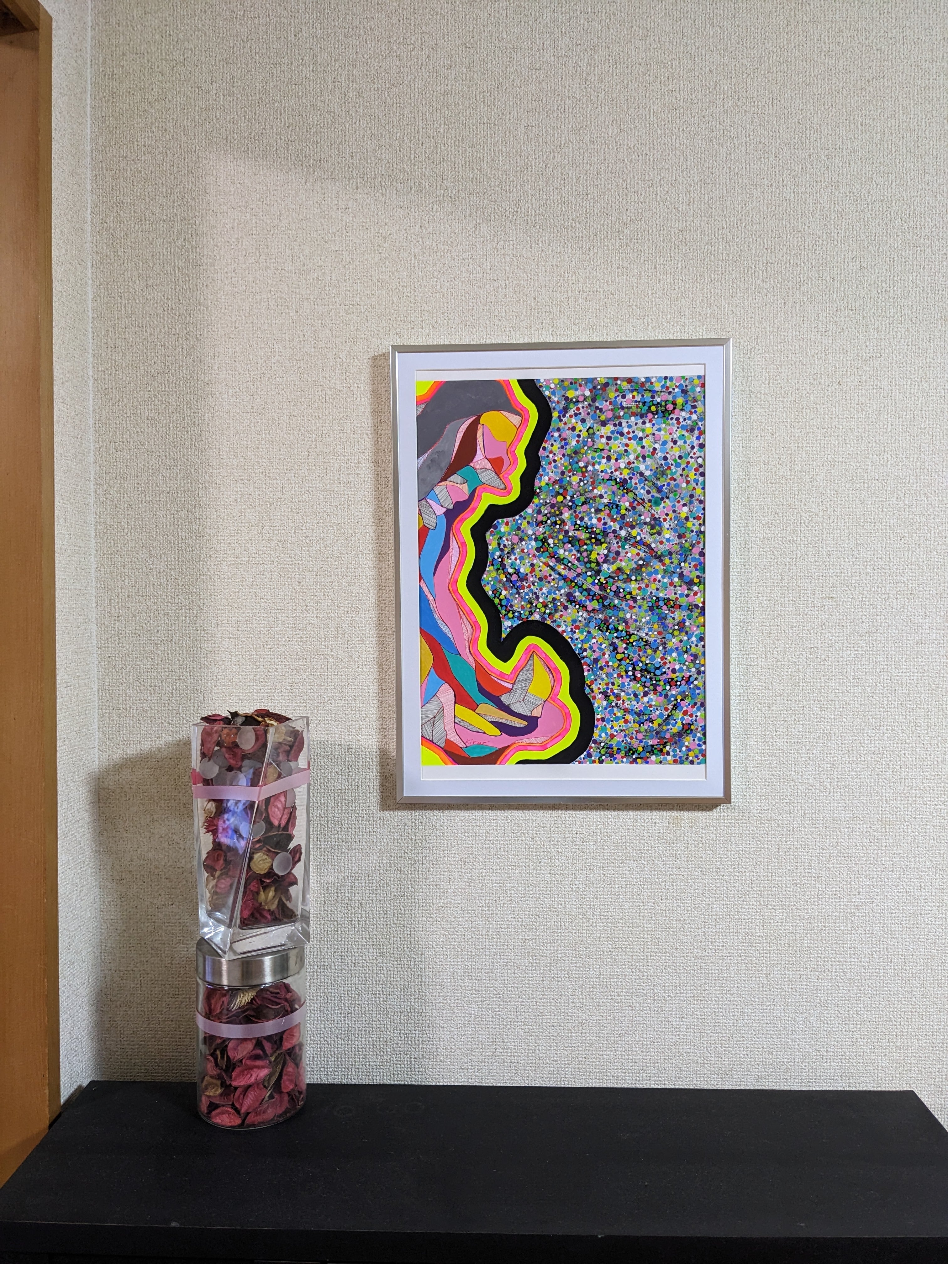 新品のアルミ製額も付いていますのですぐに飾ることもできます 、透明性が高いアクリル板、 マット付きです
